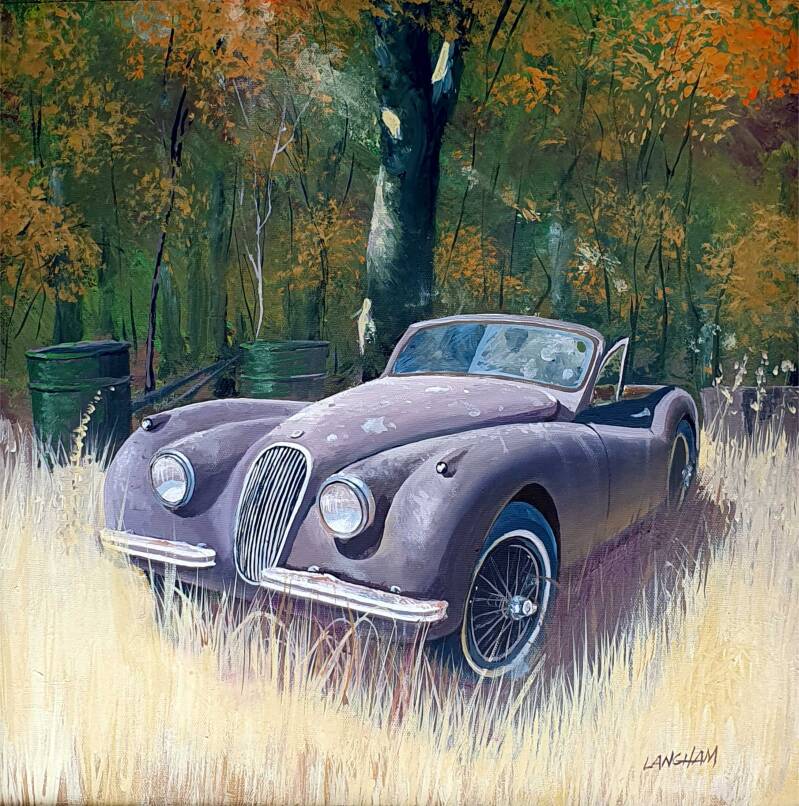 JAG This old jag is ready for restoration job, I particularly love the sweet curves of these Jags, Acrylic on canvas board